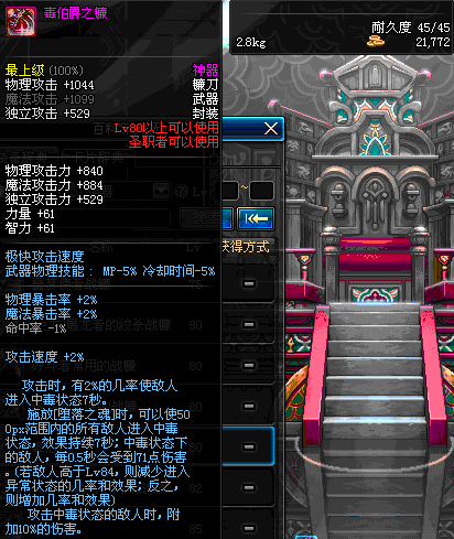 | 80 | 毒伯爵之镰 | *Lv80~86普通地下城怪物掉落 *在加百利的神秘商店购买 |