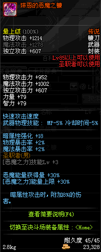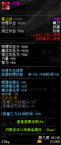 | 80 | 极刑绝之镰 | *人间界卡奴鲁克 掉落 (能源中心地区的深渊地下城) | * 暗属性 | |