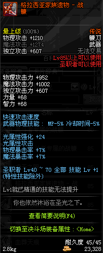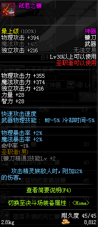 | 30 | 圣物 : 炽焰天使之宽刃钩镰 | *Lv29~36普通地下城怪物掉落 |