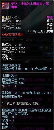 | 15 | 圣物 : 水魔碧灵之鹤嘴镰 | *Lv13~21普通地下城怪物掉落 |