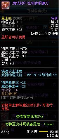 | 15 | (魔法封印)密制青铜镰刀 | *Lv13~21普通地下城怪物掉落 *完成[专职贺礼]任务 |
