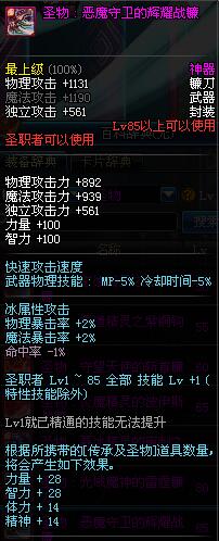 | 80 | 圣物 : 光域魔神的雷霆镰刀 | *Lv80~86普通地下城怪物掉落 | ||