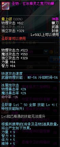 | 50 | 圣物 : 玄冰精灵之宽刃钩镰 | *Lv50~56普通地下城怪物掉落 |