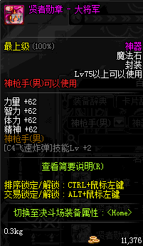 | 辅助装备: | 全职业 鬼剑士 女鬼剑 女格斗 男格斗 神枪手 女枪手 魔法师 男法师 圣职者 暗夜使者 守护者 |