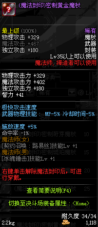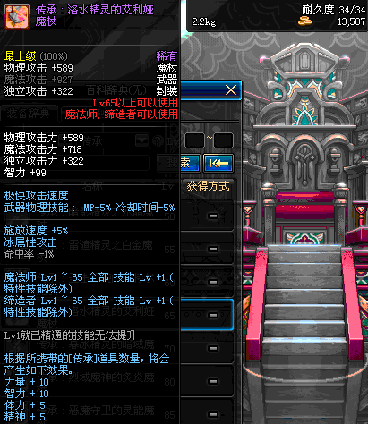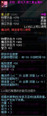 | 35 | 圣物 : 极光天使之黄金魔杖 | *Lv34~41普通地下城怪物掉落 |