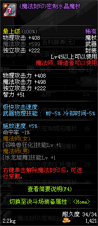 | 45 | 圣物 : 玄月精灵之水晶魔杖 | *Lv45~51普通地下城怪物掉落 |