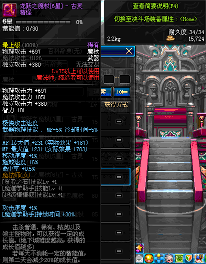 | 40 | 黑龙杖 | *Lv39~46普通地下城怪物掉落 *在加百利的神秘商店购买 |