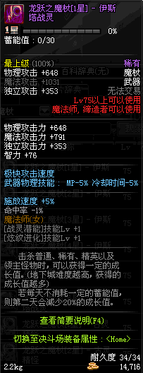 | 75 | 龙跃之魔杖[2星] – 伊斯塔战灵 | *完成二次觉醒任务后可以从NPC小铁柱处获得此道具。 | ||