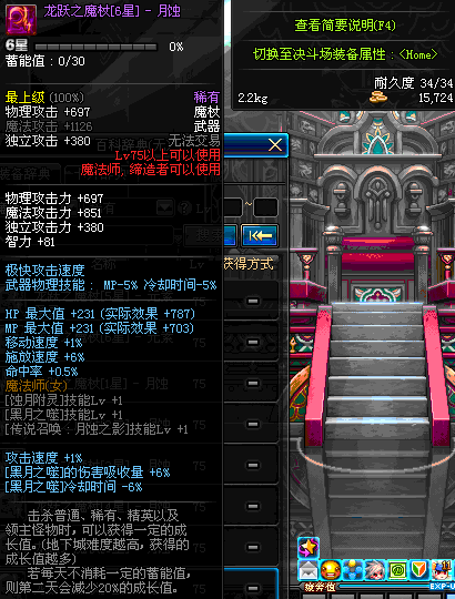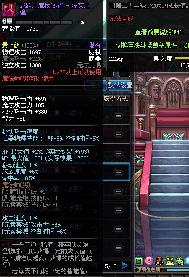 | 75 | 龙跃之魔杖[6星] – 月蚀 | *完成二次觉醒任务后可以从NPC小铁柱处获得此道具。 | ||