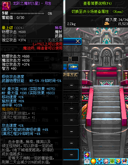 | 75 | 龙跃之魔杖[4星] – 月蚀 | *完成二次觉醒任务后可以从NPC小铁柱处获得此道具。 | ||