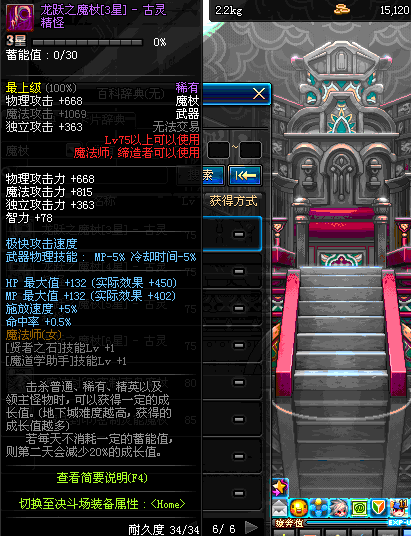 | 75 | 龙跃之魔杖[2星] – 元素圣灵 | *完成二次觉醒任务后可以从NPC小铁柱处获得此道具。 | ||
