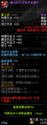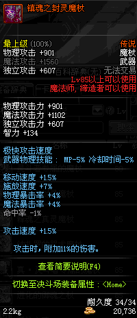 | 85 | 镇魂之封灵魔杖 | *时空之门地区 - 吟游诗人艾丽丝 出售 (镇魂之石×100) *购买镇魂武器礼盒(低级镇魂之石×140) |