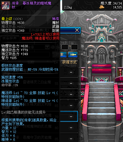 | 70 | 圣物 : 暮冰精灵的暗域魔杖 | *Lv70~76普通地下城怪物掉落 |