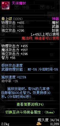 | 45 | 天诛魔杖 | *Lv45~51普通地下城怪物掉落 *在加百利的神秘商店购买 |