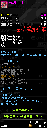 | 65 | 卡斯帕魔杖 | *Lv65~71普通地下城怪物掉落 *在加百利的神秘商店购买 |