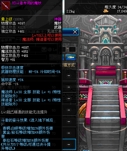 | 25 | 克拉拉的花语魔杖 | *皇后克拉拉 掉落(地下城: 绝望的棋局) *在NPC阿尔伯特·伯恩斯坦的物品店购买(阿拉德陨石×60) |
