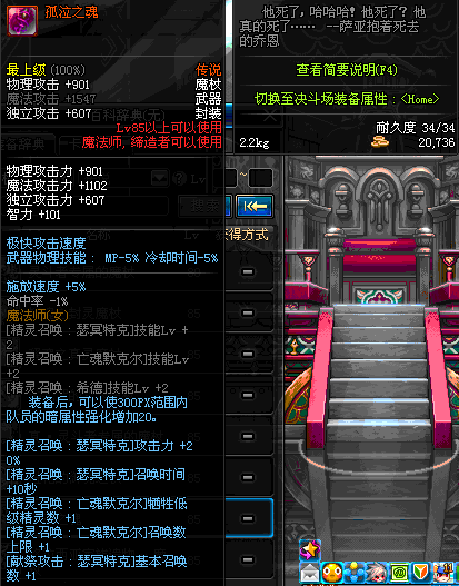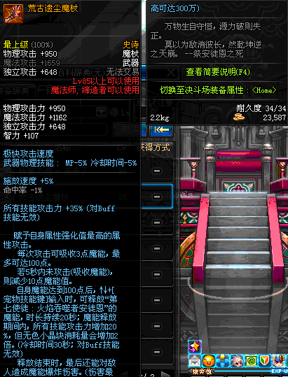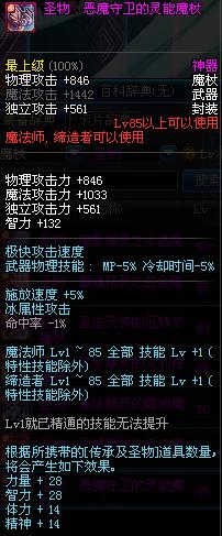 | 85 | 圣物 : 恶魔守卫的灵能魔杖 | *Lv85~91普通地下城怪物掉落 | ||