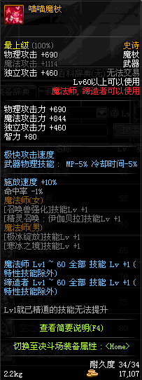| 60 | 喵喵魔杖 | *Lv59~66深渊地下城怪物掉落 *攻坚队完成安徒恩团队模式的[讨伐安徒恩]任务时,获得的奖励。 *从NPC沉默之克雷娅的物品店购买 |