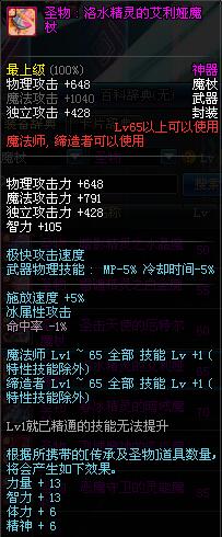 | 65 | 圣物 : 洛水精灵的艾利娅魔杖 | *Lv65~71普通地下城怪物掉落 |