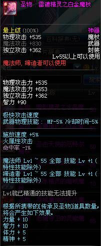 | 55 | 圣物 : 雷谴精灵之白金魔杖 | *Lv53~61普通地下城怪物掉落 |