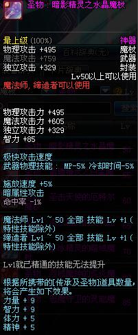 | 50 | 圣物 : 暗影精灵之水晶魔杖 | *Lv50~56普通地下城怪物掉落 |