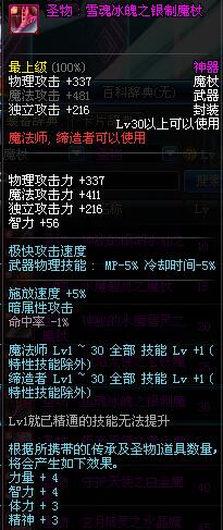 | 30 | 圣物 : 雪魂冰魄之银制魔杖 | *Lv29~36普通地下城怪物掉落 |