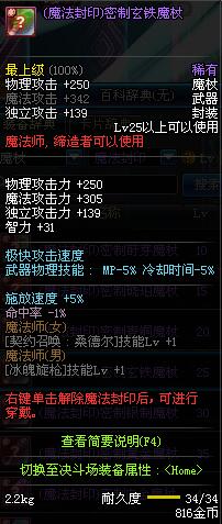 | 25 | (魔法封印)密制玄铁魔杖 | *Lv24~31普通地下城怪物掉落 *在NPC阿尔伯特·伯恩斯坦的物品店购买 *完成[帝国的险恶用心]任务 *使用Lv24~31怪物掉落的设计图进行制作 |