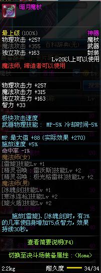 | 20 | 暗月魔杖 | *Lv19~26普通地下城怪物掉落 *在加百利的神秘商店购买 |