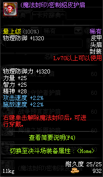 | 15 | (魔法封印)密制皮护肩 | *Lv13~21普通地下城怪物掉落 *完成[[魔法封印防具]天才武道家的试炼(1/3)]任务 *使用Lv13~21怪物掉落的设计图进行制作 |