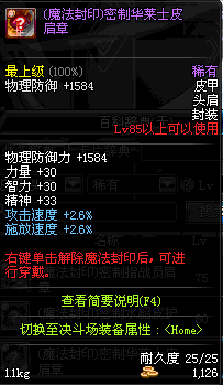 | 85 | 圣物 :荣耀的天马守护神的狼皮斗篷 | *Lv85~91普通地下城怪物掉落 | ||