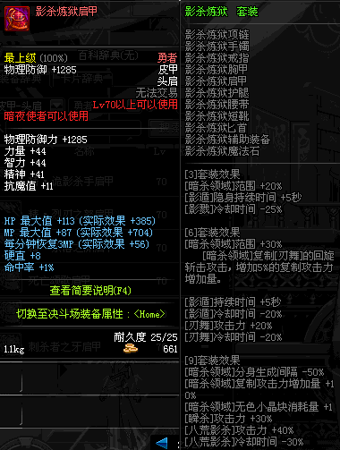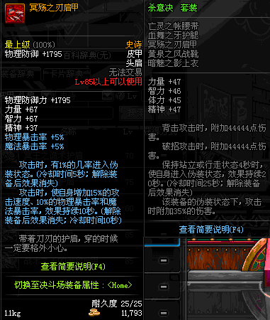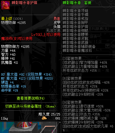| 85 | 冥殇之刃肩甲 | *Lv84~91深渊地下城怪物掉落 | 杀意决 套装 | |