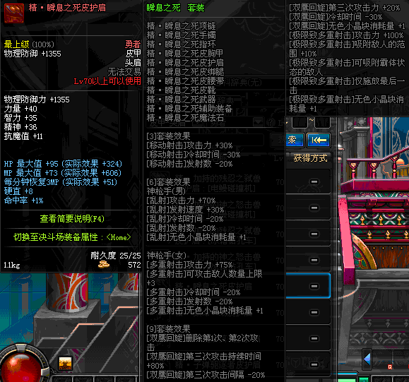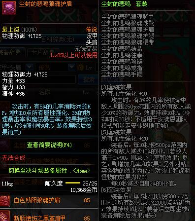 | 85 | 血色残阳狼魂护肩 | *昨日之巴斯顿 掉落 (在远古地下城里出没。) *从NPC鲁特的物品店出售的[血色残阳防具礼盒]中获得 |