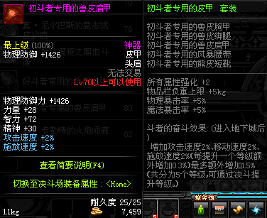 | 70 | 初斗者专用的兽皮肩甲 | *决斗场-爱莎&鹰吉&风铃 出售 | ||