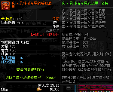| 85 | 战术之王的御敌肩甲 | *Lv84~91深渊地下城怪物掉落 | 战术之王的御敌 套装 | |