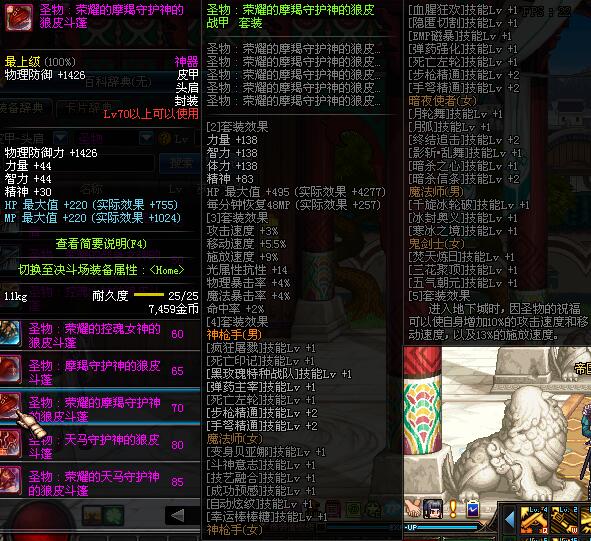 | 70 | 圣物 :荣耀的摩羯守护神的狼皮斗篷 | *Lv70~76普通地下城怪物掉落 |