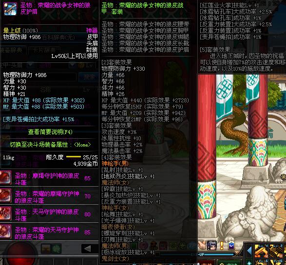 | 45 | 圣物 :战争女神的狼皮护肩 | *Lv45~51普通地下城怪物掉落 |