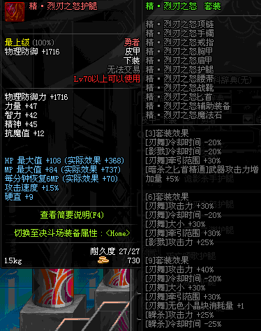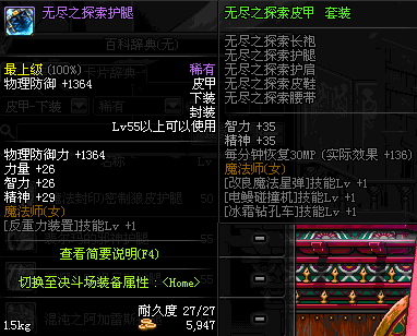 | 85 | 战术之王的御敌腿甲 | *Lv84~91深渊地下城怪物掉落 | 战术之王的御敌 套装 | |