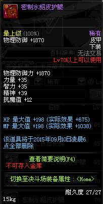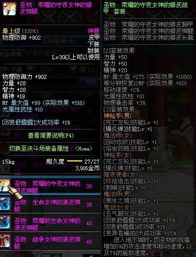 | 30 | 圣物 :荣耀的守夜女神的蟒皮绑腿 | *Lv29~36普通地下城怪物掉落 |