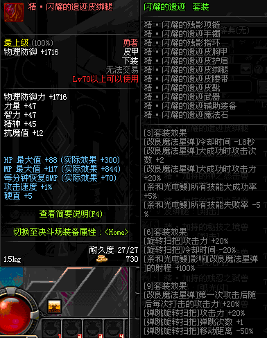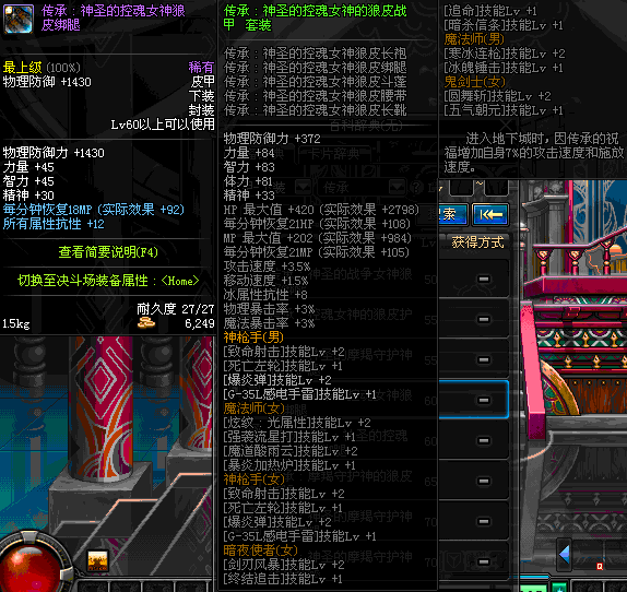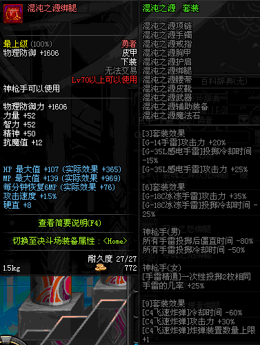 | 70 | *设计图(70LV以上普通地下城 登场的NPC加百利 出售) *战争之王的狼皮护腿 → 用远古神器装备进化书升级(NPC船长鲁特 出售) |
