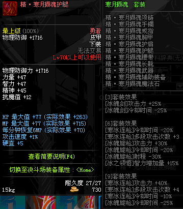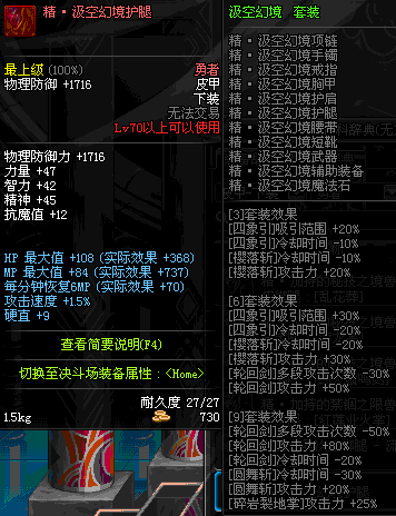| 80 | 游龙之魂护腿 | *Lv79~86深渊地下城怪物掉落 | 游龙之魂 套装 | |