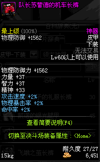 | 60 | 队长苏蕾德的机车长裤 | *机动队长苏雷德 掉落(根特东门) **在NPC泽丁·施奈德的物品店购买(黑色陨石×229) |