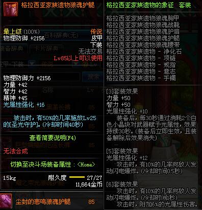 | 85 | 武动之魂狼皮护腿 | *决斗场-爱莎&鹰吉&风铃 出售 *设计图(爱莎&鹰吉&风铃 出售) |