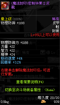 | 85 | 圣物 :荣耀的天马守护神的狼皮战靴 | *Lv85~91普通地下城怪物掉落 | ||