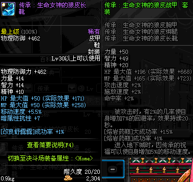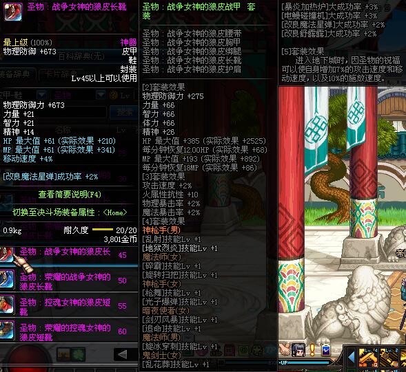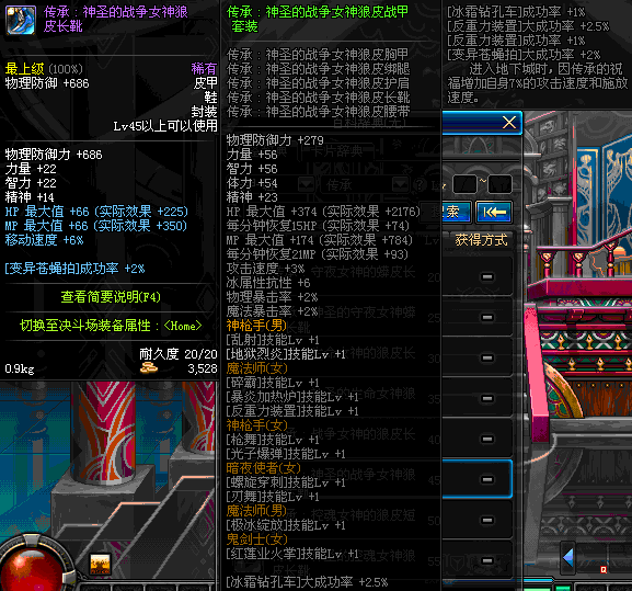 | 45 | 圣物 :战争女神的狼皮长靴 | *Lv45~51普通地下城怪物掉落 |