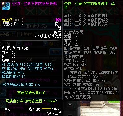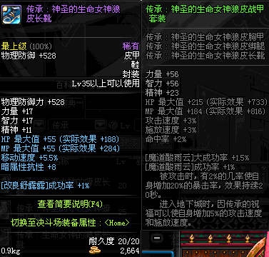 | 35 | 圣物 :生命女神的狼皮长靴 | *Lv34~41普通地下城怪物掉落 |