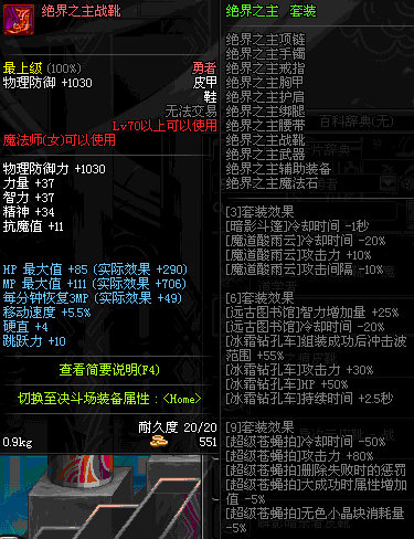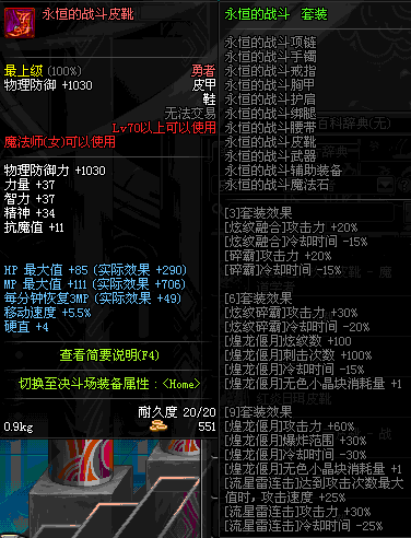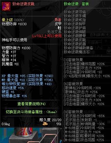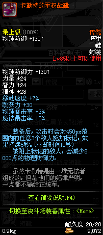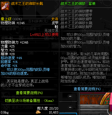 | 85 | 战术之王的御敌长靴 | *Lv84~91深渊地下城怪物掉落 | 战术之王的御敌 套装 | |