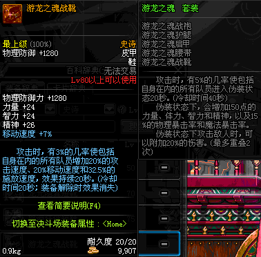 | 80 | 游龙之魂战靴 | *Lv79~86深渊地下城怪物掉落 | 游龙之魂 套装 | |