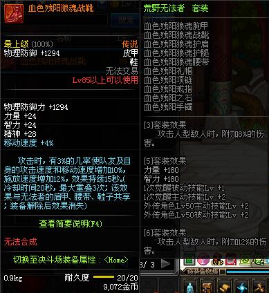 | 85 | 血色残阳狼魂战靴 | *昨日之巴斯顿 掉落 (在远古地下城里出没。) *从NPC鲁特的物品店出售的[血色残阳防具礼盒]中获得 |