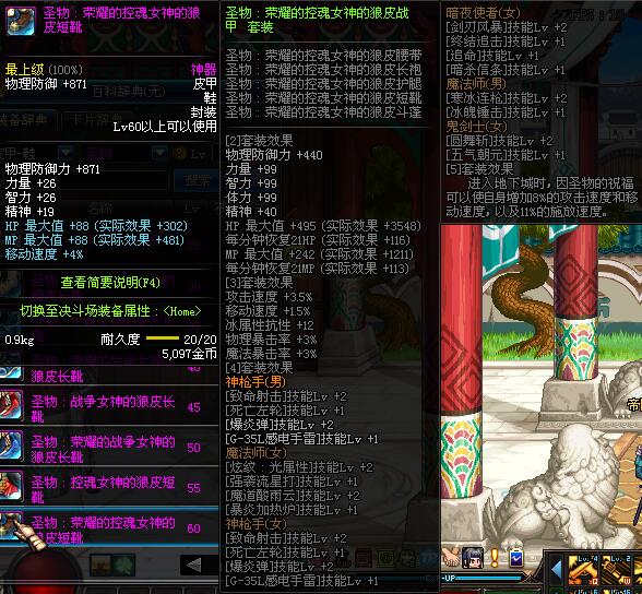 | 60 | 圣物 :荣耀的控魂女神的狼皮短靴 | *Lv58~66普通地下城怪物掉落 |
