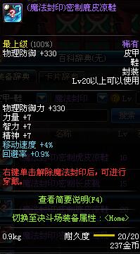 | 20 | (魔法封印)密制鹿皮凉鞋 | *Lv19~26普通地下城怪物掉落 *完成[摧毁蚁穴]任务 *使用Lv19~26怪物掉落的设计图进行制作 |